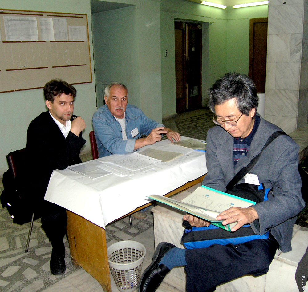 Комогорцев С. В. (слева), Исхаков Р. С. (в центре), сотрудники Института физики им. Л.В. Киренского Сибирского отделения Российской академии наук (ИФ СО РАН) и М. Чибо, университет Фукуи ( Япония) на Евро-Азиатском симпозиуме «Прогресс в магнетизме» (ЕASTMAG-2004) , Красноярск, 24-27 августа 2004 года.