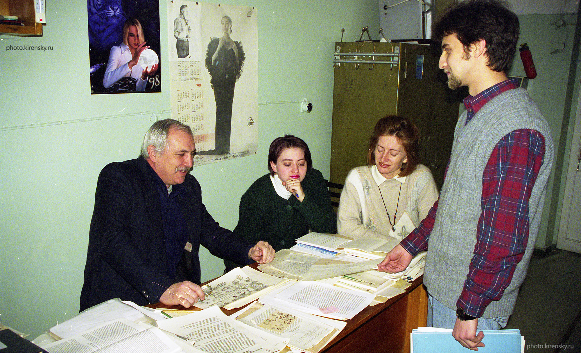2000 год. В лаборатории физики магнитных пленок Института физики им. Л.В. Киренского Сибирского отделения Российской академии наук, слева направо: профессор Исхаков Рауф Садыкович, заведующий лабораторией, аспиранты: Шепета Наталья Александровна, Кузовникова Людмила Александровна и Комогорцев Сергей Викторович, старший научный сотрудник.
