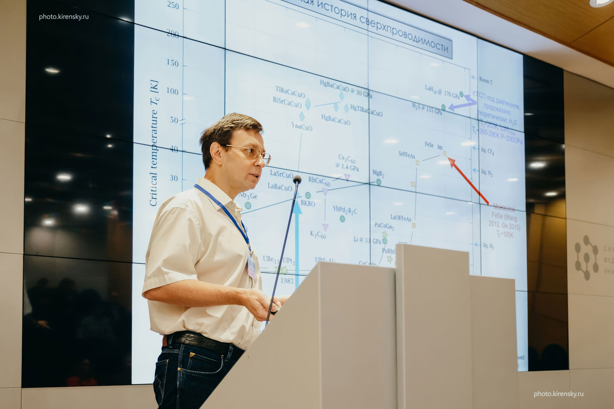 Коршунов Максим Михайлович, член-корреспондент Российской академии наук, главный научный сотрудник лаборатории физики магнитных явлений Институте физики им. Л.В. Киренского Сибирского отделения Российской академии наук, на ХIV Сибирском семинаре по высокотемпературной сверхпроводимости и физики низких температур «ОКНО-2023» в 2023 году.