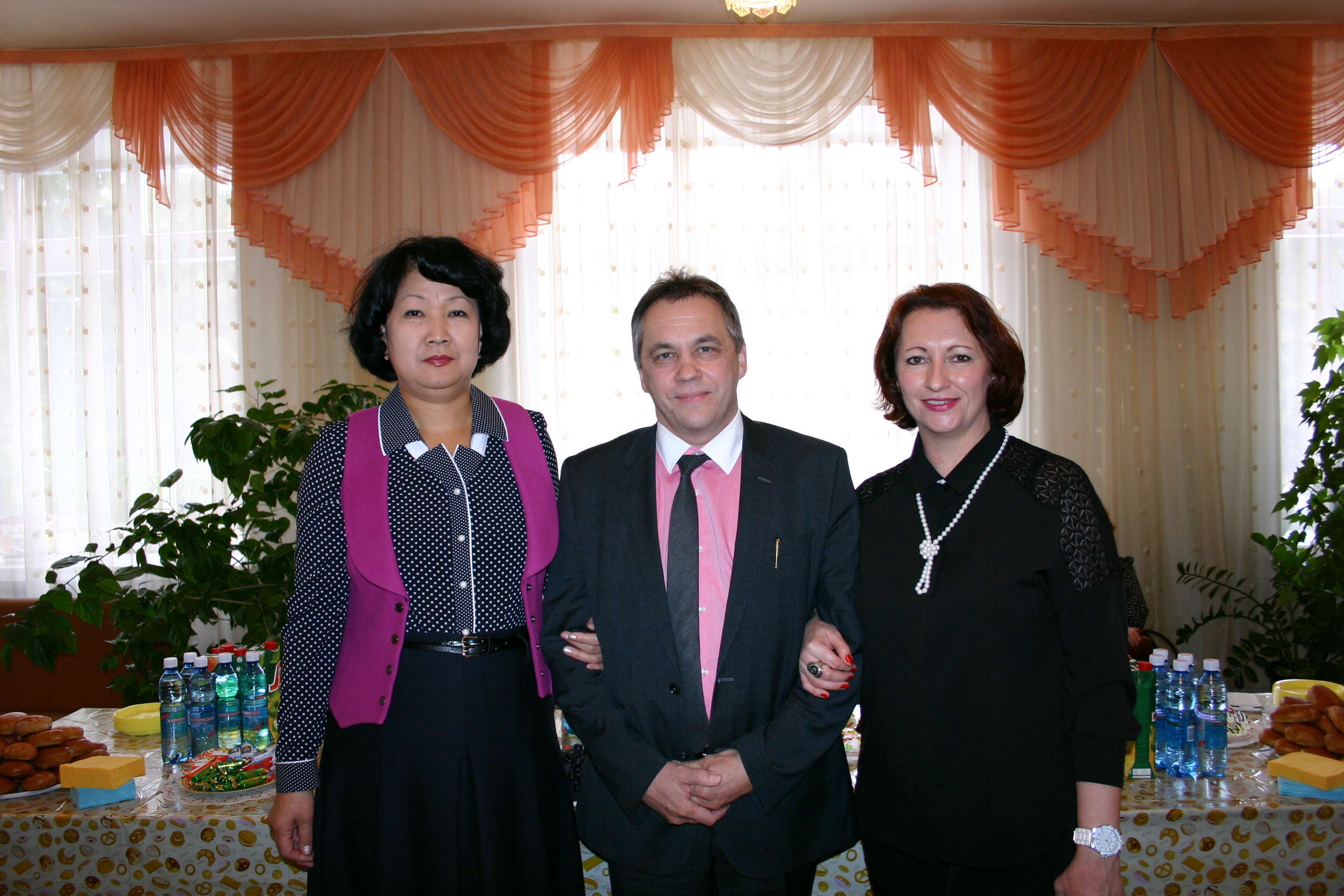 12 октября 2016 года. На празднике в честь 60-летия Института физики им. Л.В. Киренского Сибирского отделения Российской академии наук (ИФ СО РАН). Слева направо: Ли Л.А., ведущий технолог лаборатории магнитодинамики, Волков Н.В., директор института, Бондарева Е.В., помощник директора института. Красноярск.
