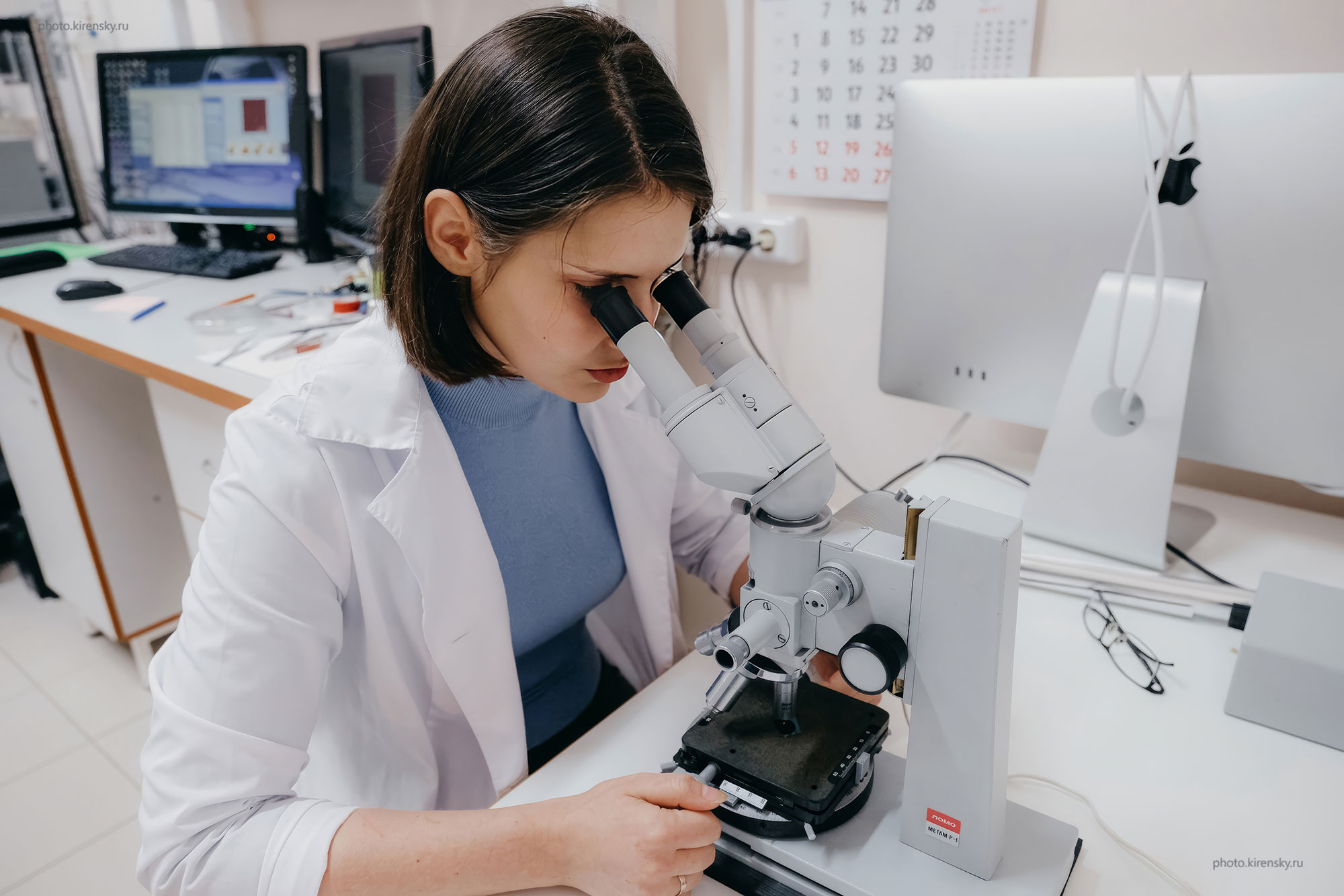 Лукьяненко Анна Витальевна, инженер-физик по образованию, кандидат физико-математических наук, научный сотрудник лаборатории радиоспектроскопии и спиновой электроники Института физики им. Л.В. Киренского Сибирского отделения Российской академии наук. Идет настройка зондов настольной зондовой станции для изучения электрических свойств при повышенных температурах в 2025 году.