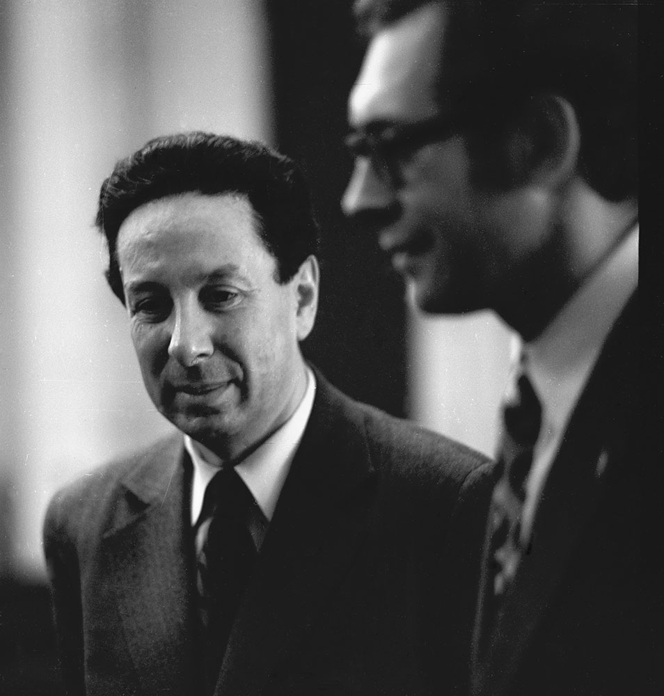 4 ноября 1974 года. Лундин А.Г. (слева), заместитель директора по научной работе, заведующий лабораторией радиоспектроскопии Института физики им. Л.В. Киренского Сибирского отделения Академии наук СССР (ИФ СО АН СССР)