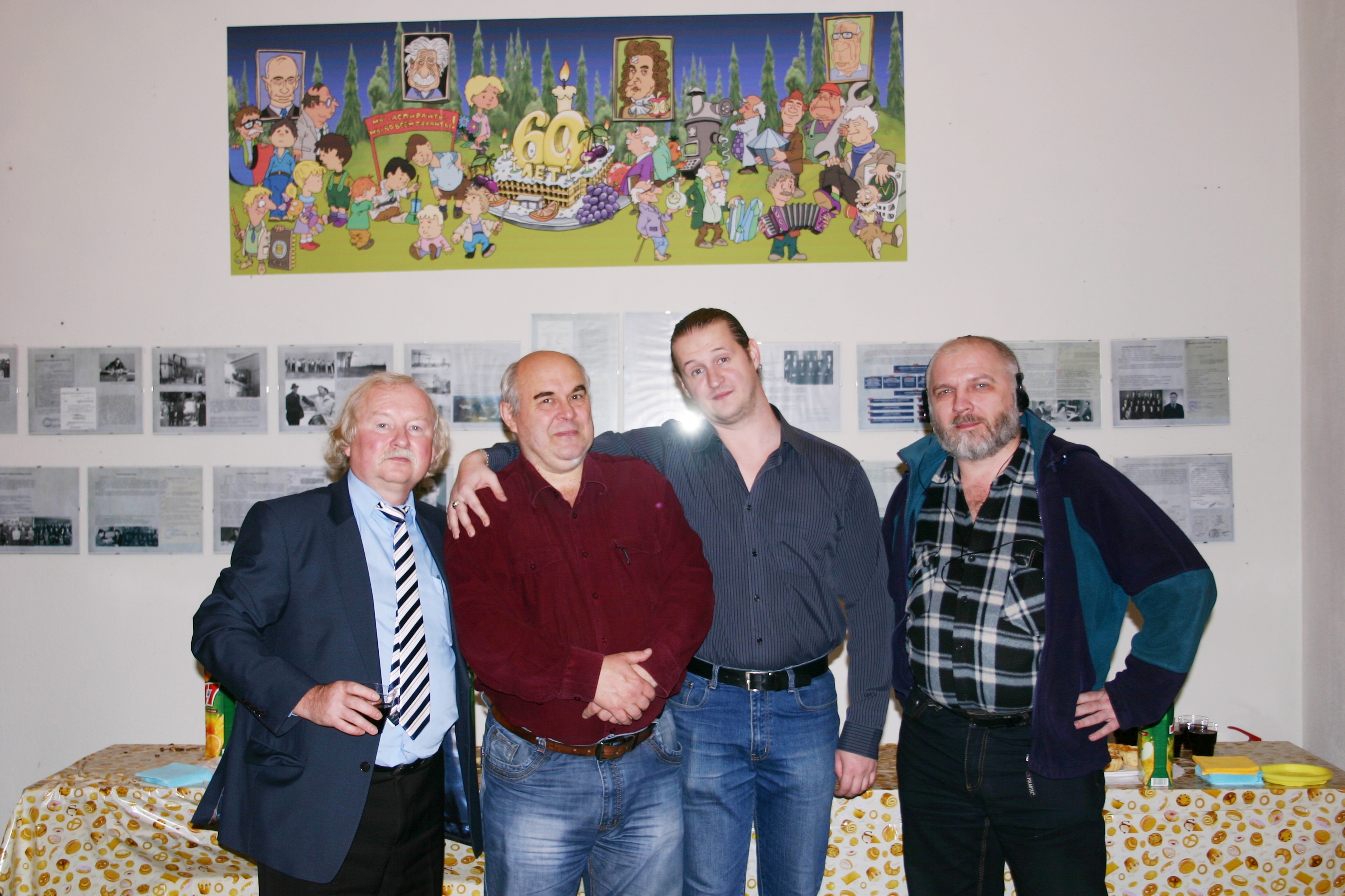 12 октября 2016 года. Состоялось расширенное заседание ученого Совета Института физики им. Л.В. Киренского Сибирского отделения Российской академии наук (ИФ СО РАН), посвященное 60-летию образования института с участием сотрудников института, представителей администраций города и края, директоров предприятий-партнеров, директоров подразделений Федерального исследовательского центра «Красноярский научный центр Сибирского отделения Российской академии наук» (ФИЦ КНЦ СО РАН) и других гостей. В перерыве заседании Совета в холле института. Фото на память. Слева направо: А.Н. Втюрин, О.А. Масленников, С.Н. Леонтьев. Красноярск.