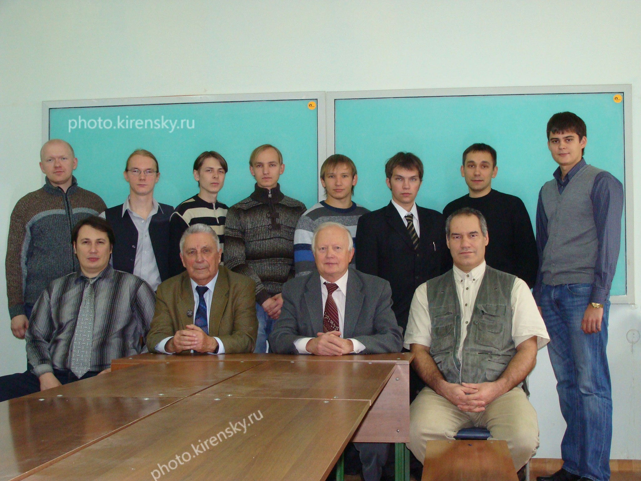 2007 год. Сотрудники лаборатории теоретической физики Института физики им. Л.В. Киренского Сибирского отделения Российской академии наук (ИФ СО РАН). Слева направо: Головня А.А., Жолобова Н.Н., Игнатченко В.А., Вальков В.В., Коровушкин М.М., Шкляев А.А., Мицкан В.А., Дзебисашвилли Д.М., Бакланов И.О. Красноярск.