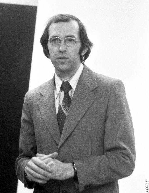 Овчинников С.Г., младший научный сотрудник лаборатории физики магнитных явлений Института физики им. Л.В. Киренского Сибирского отделения Академии наук СССР (ИФ СО АН СССР), на защите своей диссертации на соискание ученой степени кандидата физико-математических наук, 1978 год. Красноярск