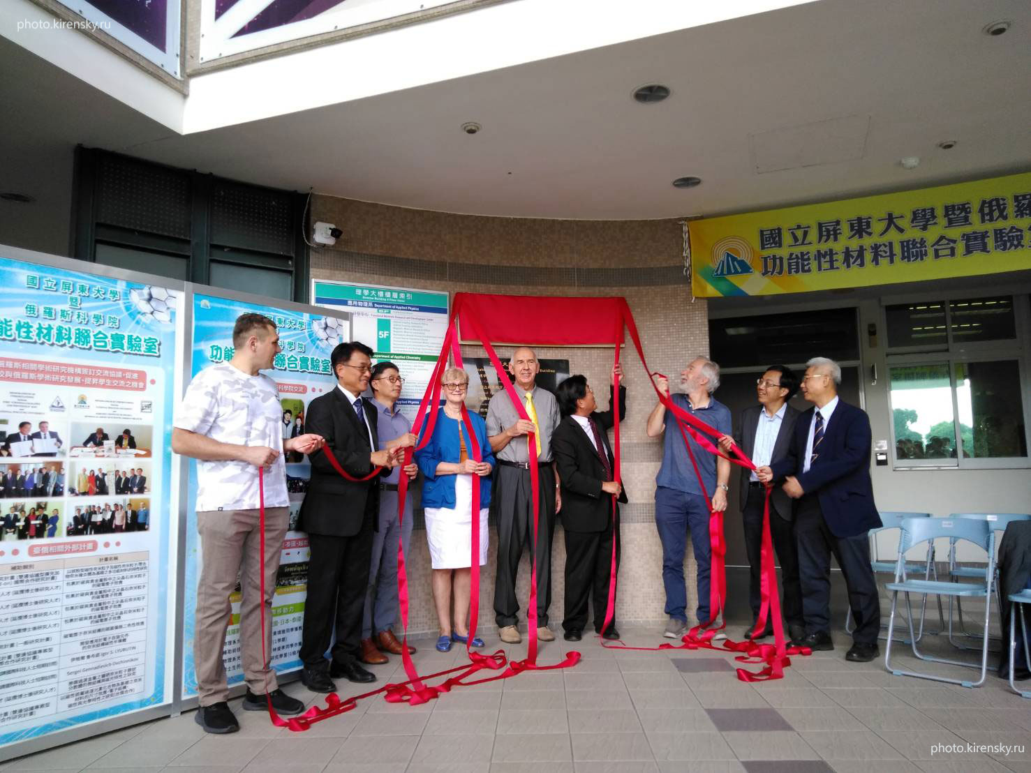 Овчинников Сергей Геннадьевич (в центре снимка), заведующий лабораторией физики магнитных явлений Института физики им. Л.В. Киренского Сибирского отделения Российской академии наук, на открытии в Пинтонге совместного центра. Тайвань. Ноябрь 2019 года.