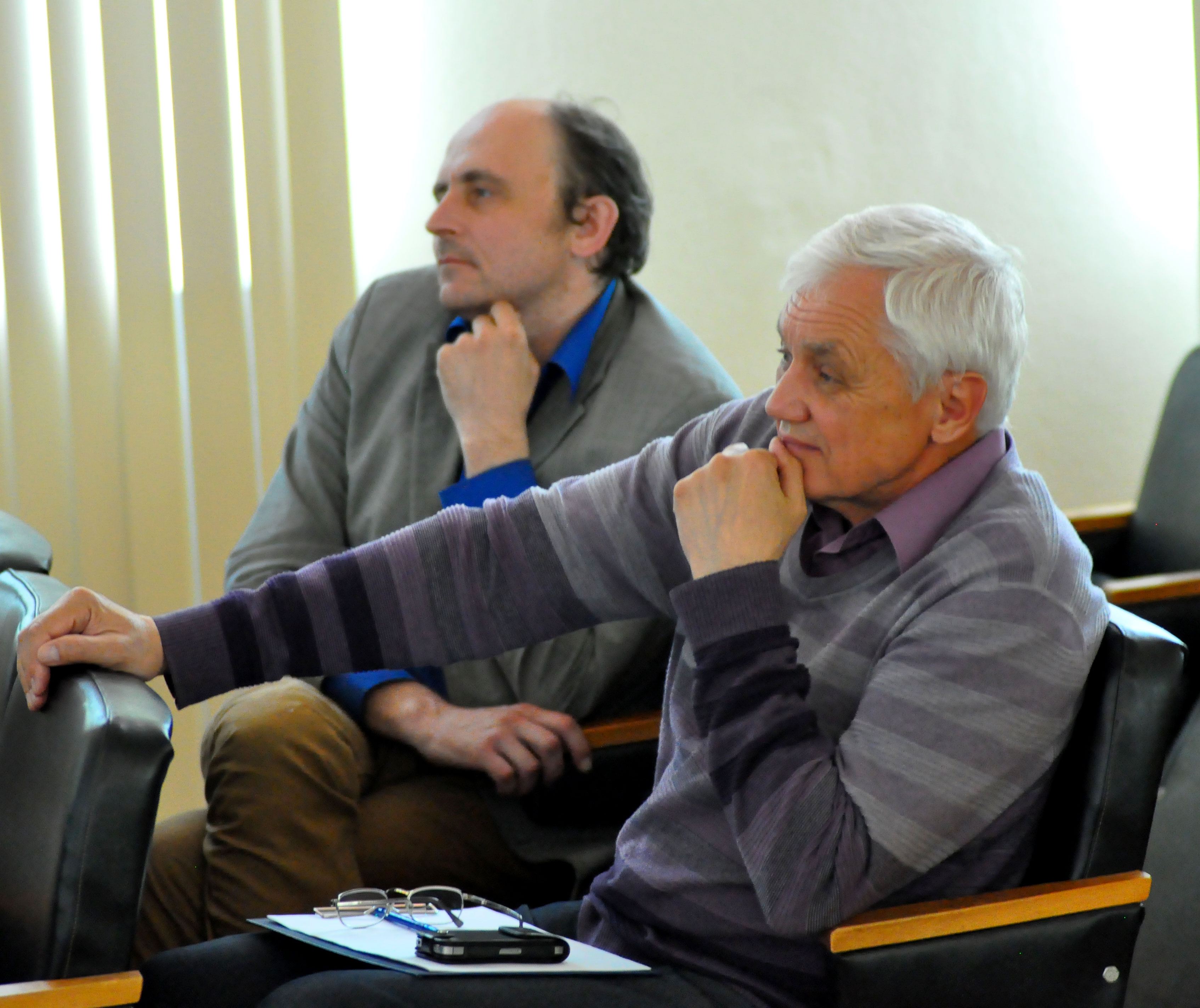 2015 год. В конференц-зале Института физики им. Л.В. Киренского Сибирского отделения Российской академии наук (ИФ СО РАН). Балаев Д.А. (слева), заведующий лабораторией резонансных свойств магнитоупорядоченных веществ и Панкрац А.И., ведущий научный сотрудник этой лаборатории. Красноярск.