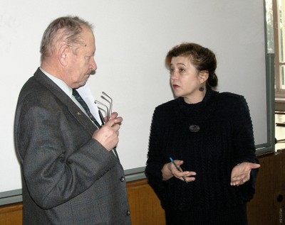 Академик Кирилл Сергеевич Александров, директор института, и заведующая аспирантурой Попова Нина Ивановна. Институт физики им. Л.В. Киренского Сибирского отделения Российской академии наук (ИФ СО РАН). Снимок 1998 года. Красноярск.
