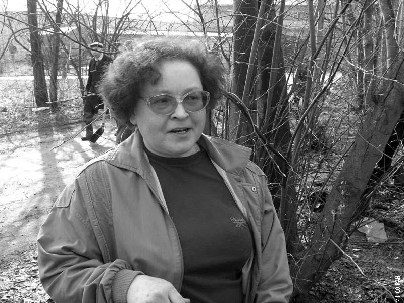 Принцева Галина Николаевна, гальваник на экспериментальном опытном участке Института физики им. Л.В. Киренского Сибирского отделения Российской академии наук (ИФ СО РАН), во время субботника по уборке территории института в 2004 году.