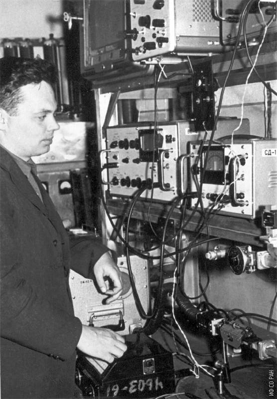 Русов Глеб Иванович, старший научный сотрудник лаборатории физики магнитных явлений Института физики Сибирского отделения Академии наук СССР (ИФ СО АН СССР). К 1967-му году Глеб Иванович разработал и собрал уникальную установку для исследования спин-волнового резонанса тонких ферритовых пленок. Красноярск.
