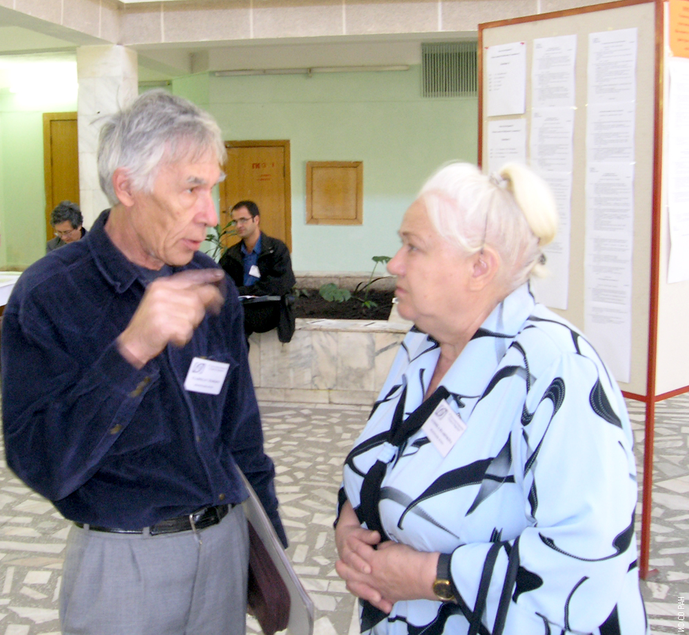 Людмила Ивановна Рябинкина (слева), Людмила Викторовна Буркова, сотрудники Института физики им. Л.В. Киренского Сибирского отделения Российской академии наук (ИФ СО РАН), на Международной конференции "NATO Advanced Research Workshop Smart Materials for Ranging Systems", Красноярск, август 2004 года.