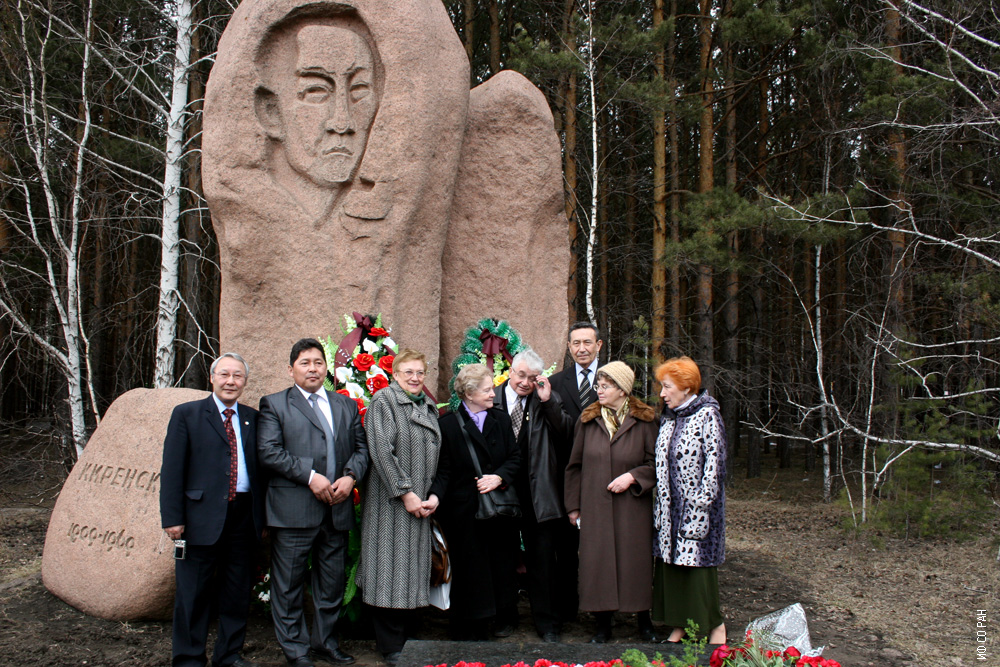 В день 100-тия со дня рождения академика Л.В. Киренского, организатора и первого директора Института физики им. Л.В. Киренского Сибирского отделения Российской академии наук (ИФ СО РАН), В.Ф. Шабанов, директор Института физики, вместе с дочерью Леонида Васильевича Татьяной Овчинниковой возлагают цветы у мемориальной доски Киренского на здании Красноярского педагогического университета 9 апреля 2009 года.
