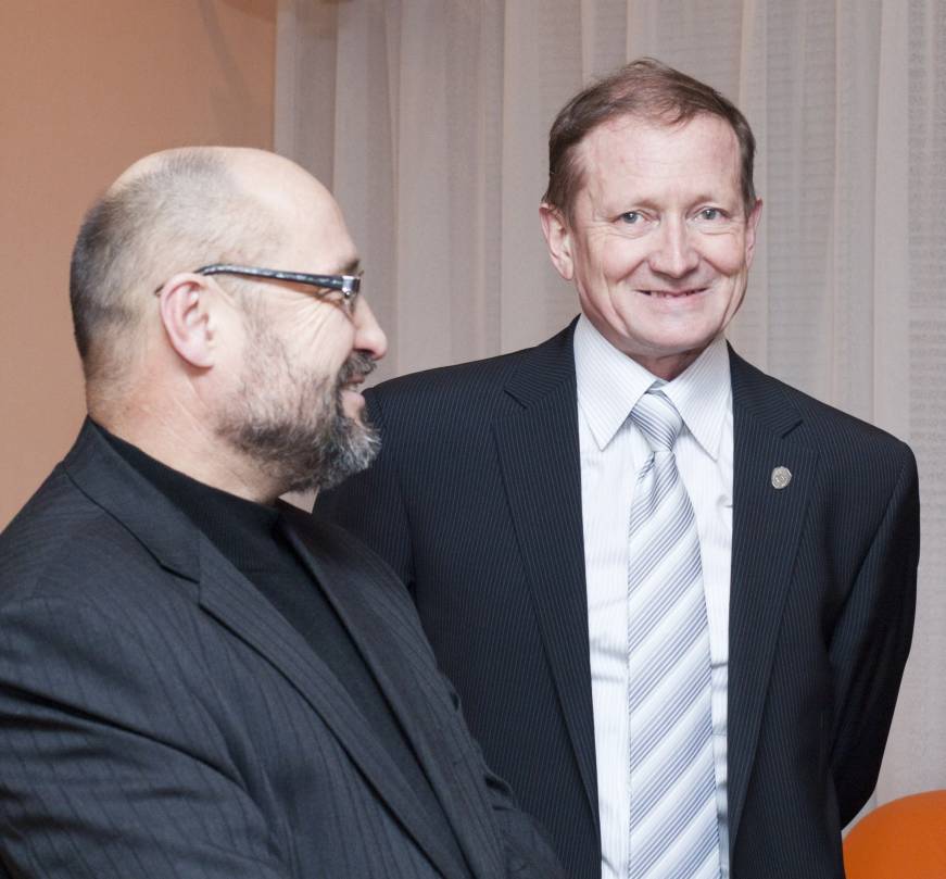 Ботвич А.Н., (слева) Шефер А.Д. на семинаре отдела оптики Института физики им. Л.В. Киренского Сибирского отделения Российской академии наук, который был посвящён 100- летнему юбилею организатору и первому руководителю отдела Коршунова А.В. Январь 2011 года, Красноярск, Академгородок, Дом ученых.