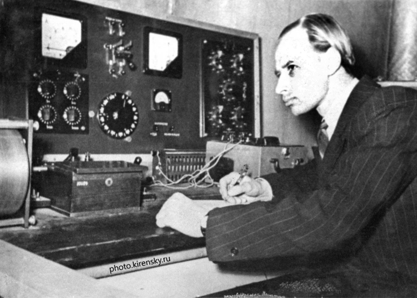 1967 год. Р.П. Смолин, руководитель группы исследований магнитных ферритов в лаборатории магнитных материалов Института физики Сибирского отделения Академии наук СССР (ИФ СО АН СССР), за пультом управления вертикальным астатическим магнетометром для исследования температурного гистерезиса намагниченности ферритов. Красноярск.