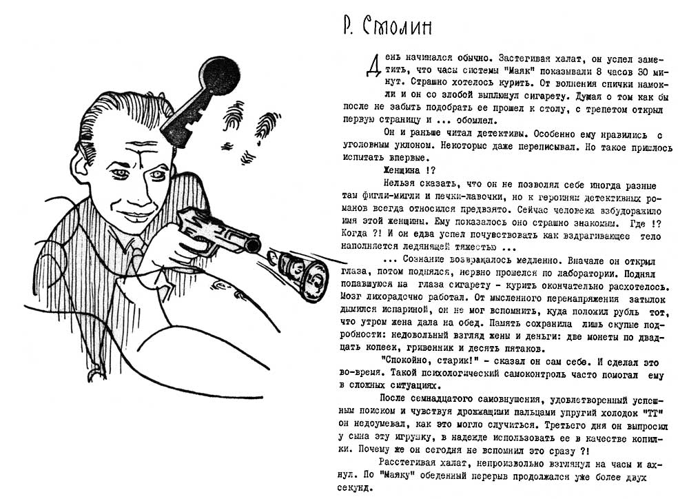 Дружеский шарж Смолина Р.П. из книги "Музей друзей", изданной научными сотрудниками Института физики Сибирского отделения Академии наук СССР (ИФ СО АН СССР) Олегом Артемьевичем Баюковым и Николаем Сергеевичем Чистяковым. Удивительная книжка дружеских шаржей и эпиграмм на сотрудников Института физики СО АН СССР. Она вышла в 1967 году к 10-летию начала работы института. Вышла небольшим тиражом в 100 экземпляров и распространялась строго по списку, лично в руки. Узнать себя на страницах книги смогли 48 самых ярких и заметных личностей молодого института. Позже (в 1971 году) вышла вторая книга под таким же названием. Что побудило их взяться за такой труд, авторы подробно изложили в предисловии к первой и второй книгам. Книги размещены на сайте.