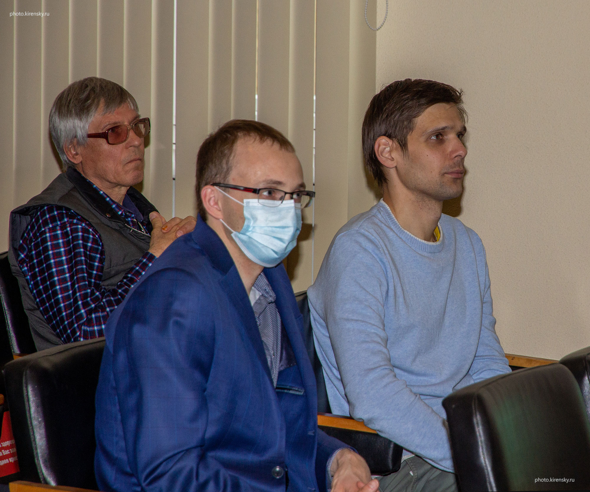 2021 год. В Институте физики им. Л.В. Киренского Сибирского отделения Российской академии наук шло заседание ученого совета по поводу торжества, связанного с 65-ем организации института. На снимке: Боев Никита Михайлович (слева), заведующий лабораторией научного приборостроения, Говорун Илья Валерьевич, научный сотрудник лаборатории приборостроения. Во втором ряду Свентитский Владимир Михайлович, оптик-механик, экспериментального опытного участка института.