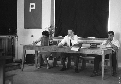 1969 год. На заседании диссертационного совета Института физики Сибирского отделения Академии наук СССР идет голосование. Слева направо: Киренский Л. В., Тропин Ю. Д., Золотухин Г. Е. Красноярск.
