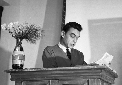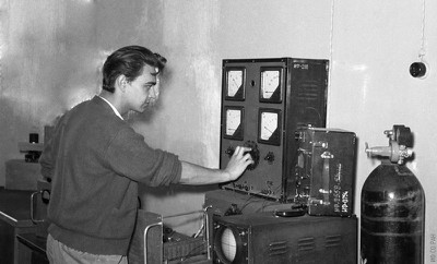 Тропин Ю.Д., младший научный сотрудник лаборатории магнетизма горных пород и геофизики Института физики Сибирского отделения Академии наук СССР (ИФ СО АН СССР). Фото 1963 года. Красноярск.