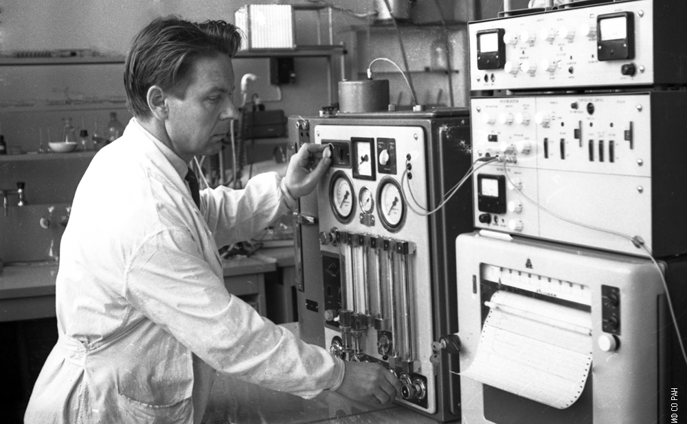 Трубачев И. Н., руководитель группы биохимии лаборатории биофизики Института физики Сибирского отделения Академии наук СССР (ИФ СО АН СССР), Фото 1967 года. Красноярск.