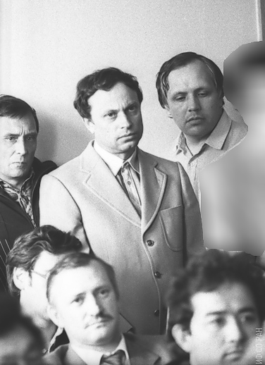 1986 год. Сотрудниками лаборатории резонансных свойств магнитоупорядоченных веществ Института физики им. Л.В. Киренского Сибирского отделения Академии наук СССР в городе Дивногорске (Красноярский край) была организована и проведена Всесоюзная конференция по аморфному магнетизму. На снимке участники конференции: в первом ряду слева направо: Петраковский Г.А., ? , Владимиров В.М. В следующем ряду Кононов В.П.