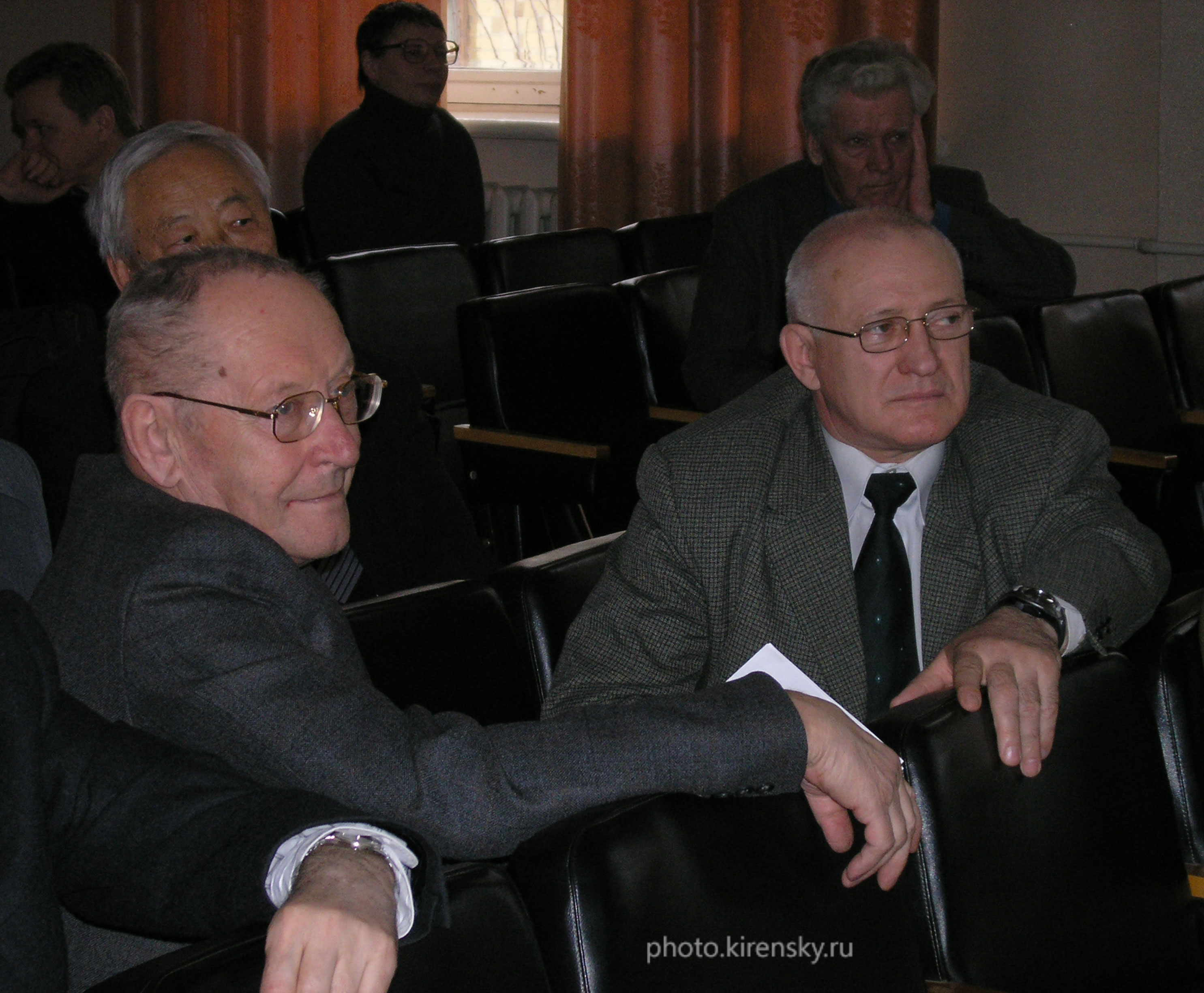 В апреле 2005 года в конференц-зале Института физики им. Л.В. Киренского Сибирского отделения Российской академии наук (ИФ СО РАН) проходили традиционные научные чтения памяти организатора и первого директора института академика Л.В. Киренского. В первом ряду: Александров К.С., советник РАН (слева), Владимиров В.М., заместитель председателя Президиума Красноярского научного центра Сибирского отделения РАН. Во втором ряду Ким П.Д., главный научный сотрудник лаборатории магнитодинамики Института физики (слева) и Галепов П.С., старший преподаватель Красноярского государственного политехнического университета. Красноярск.