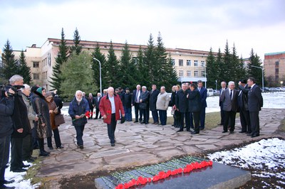 Традиционное возложение цветов к памятнику академика Л.В. Киренского, организатора и первого директора Института физики им. Л.В. Киренского Сибирского отделения Российской академии наук (ИФ СО РАН), в день его рождения. Леонид Васильевич похоронен на территории института его имени в Академгородке Красноярска.