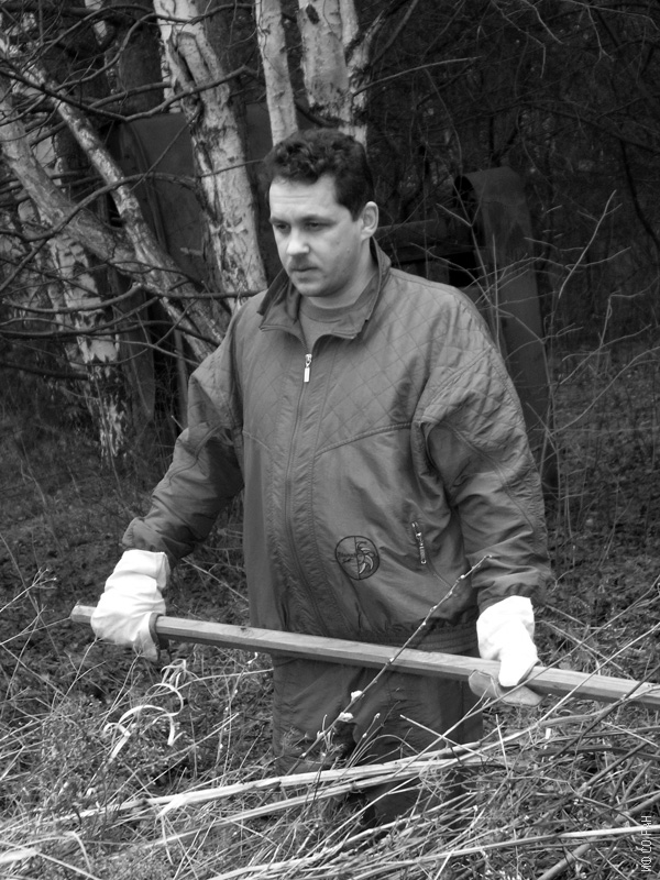 Волков Н. В., ученый секретарь Института физики им. Л.В. Киренского Сибирского отделения Российской академии наук (ИФ СО РАН), во время общеинститутского субботника на территории Института физики в 2004 году. Красноярск.