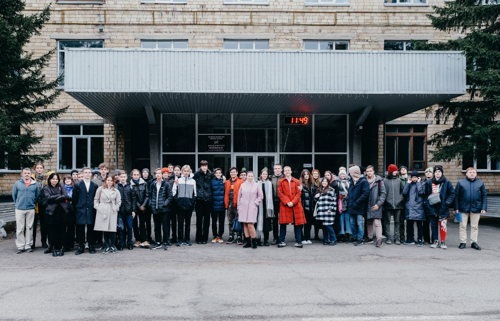 В конце октября 2022 года в Институте физики им. Л.В. Киренского Сибирского отделения Российской академии наук (ИФ СО РАН) для учеников школы № 10 имени академика Ю.А. Овчинникова – базовой школы РАН по направлению подготовки «физика» – прошли памятные чтения, посвященные празднованию 100-летия со дня рождения нобелевского лауреата Басова Николая Геннадьевича. Общий снимок учащихся школы №10 у здания Института физики им. Л.В. Киренского СО РАН. Крайний справа Вьюнышев Андрей Михайлович, заместитель директора института по научной работе. Информационным партнером мероприятия выступил Краевой фонд науки.