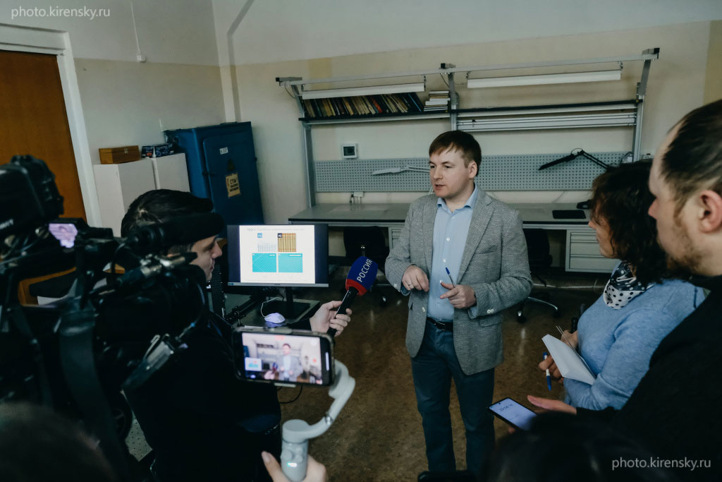 Каждый год в День российской науки «Красноярский научный центр СО РАН» проводит пресс-тур и торжественное заседание Ученого совета. 2023 год не стал исключением. Темой пресс-тура 2023 года стали световые технологии будущего. Представители СМИ посетили лабораторию когерентной оптики Института физики им. Л.В. Киренского СО РАН. На снимке Вьюнышев Андрей Михайлович, кандидат физико-математических наук, старший научный сотрудник лаборатории когерентной оптики рассказал об исследованиях вихревых лазерных пучков, проводимых в лаборатории. Исследованиях, относящихся к фундаментальным.