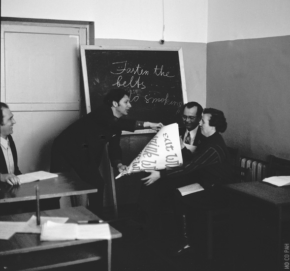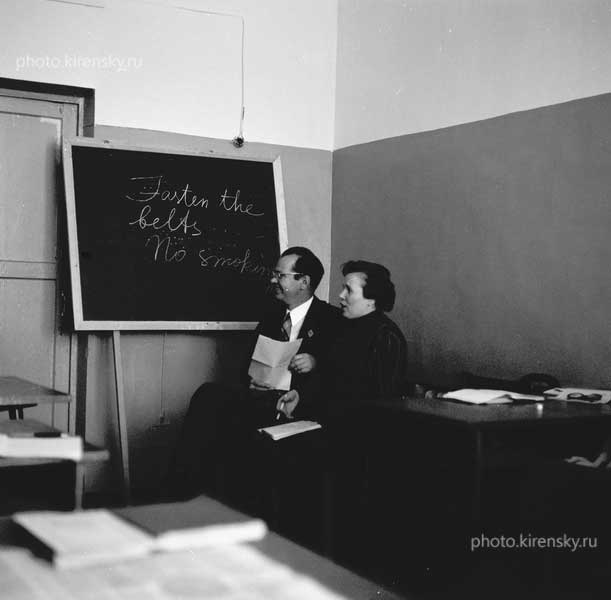 1976 год. Ковров Б. Г., Зайцева М. П., сотрудники Института физики им. Л. В. Киренского Сибирского отделения Академии наук СССР, на занятиях в группе по ускоренному изучению английского языка (кафедра иностранных языков института), г. Красноярск.
