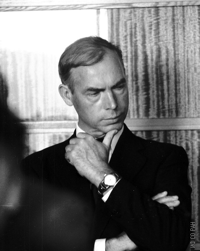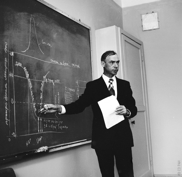 Золотухин Г.Е., заведующий лабораторией эмиссионной спектроскопии Института физики Сибирского отделения Академии наук СССР (ИФ СО АН СССР), на семинаре лаборатории, фото 1969 года. Красноярск.