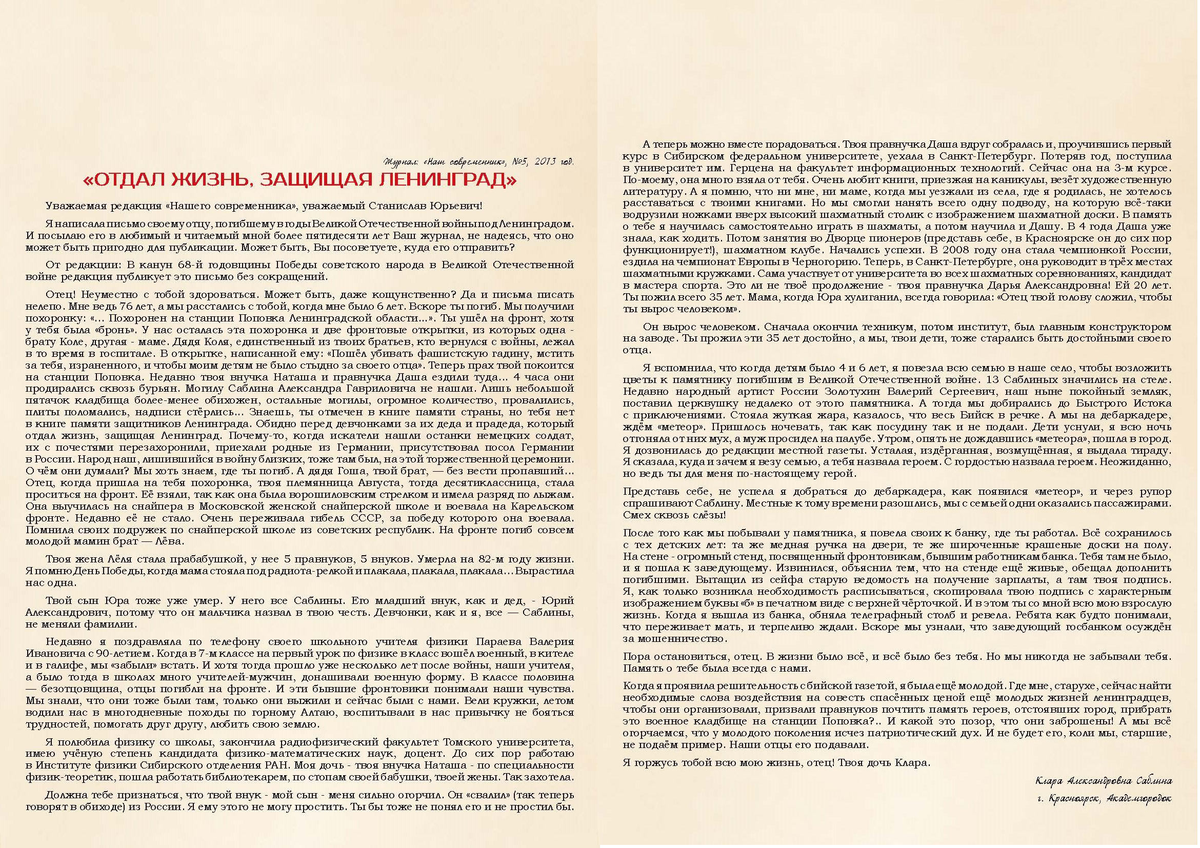 ОТДАЛ ЖИЗНЬ, ЗАЩИЩАЯ ЛЕНИНГРАД