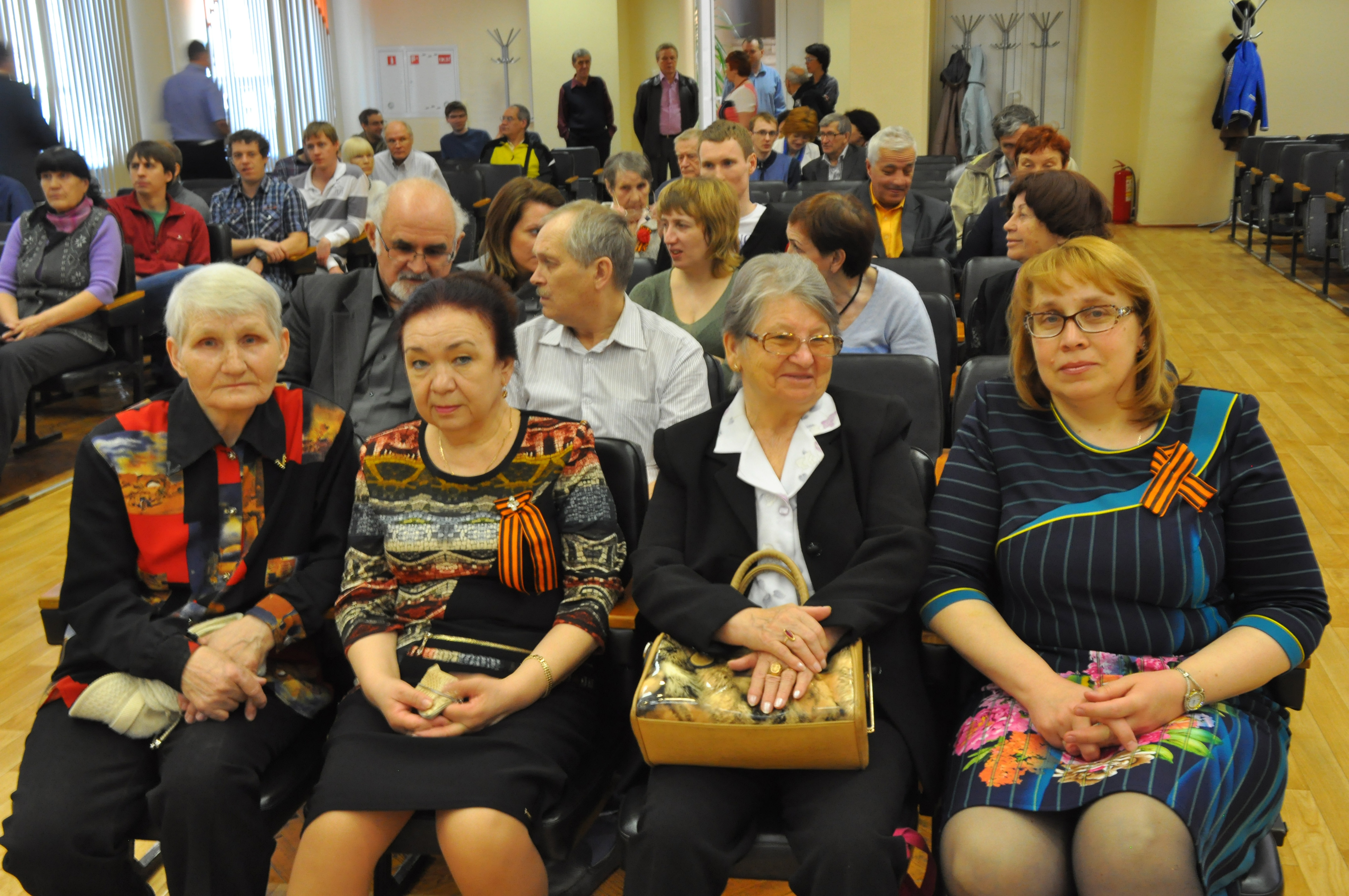 2015 год, 8 мая. В конференц-зале Института физики им. Л.В. Киренского Сибирского отделения Российской академии наук (ИФ СО РАН) на концерте, посвященном 70-тию Победы в Великой Отечественной войне (1941-1945 гг.). В первом ряду (слева направо): Л.И. Куприенко, ветеран института; Л.В. Давыдова, ветеран института; Н.С. Чанчикова, ветеран института; Т.В. Клокова, заведующая хозяйством технологического корпуса института. Во втором ряду, слева : В.Г. Архипкин, заведующий лабораторией когерентной оптики, А.М. Воротынов, старший научный сотрудник лаборатории резонансных свойств магнитоупорядоченных веществ. В третьем ряду, в центре Н.В. Веретенникова, ведущий библиотекарь. Красноярск.
