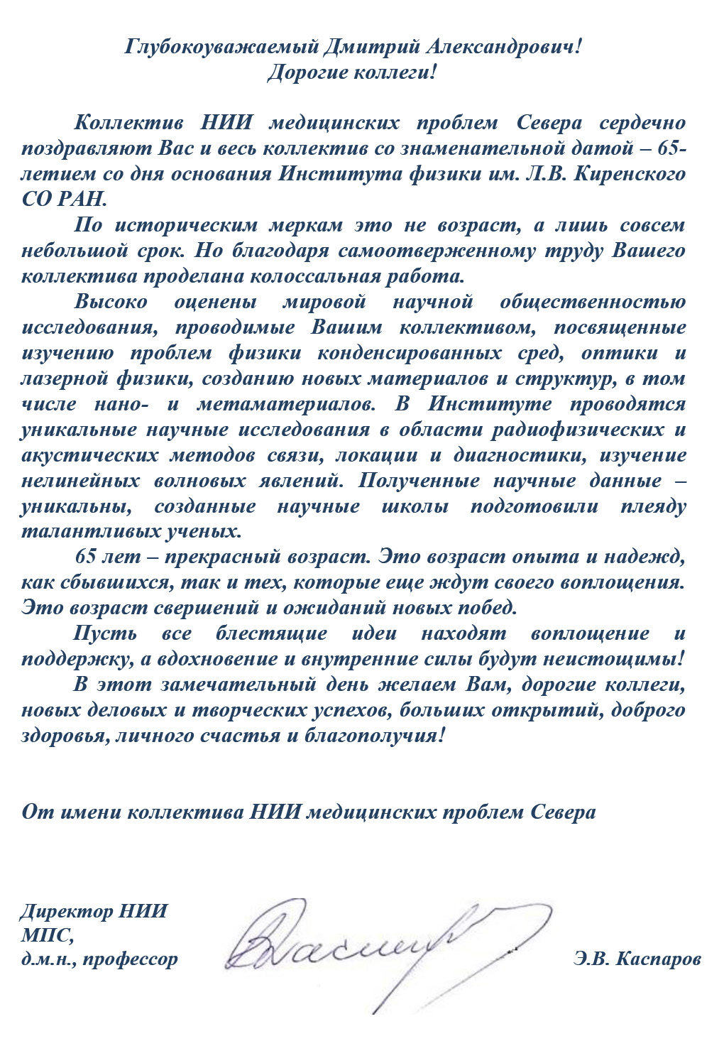 Вы здесь: Главная / События / Институту - 65 / Поздравление от НИИ Медпроблем