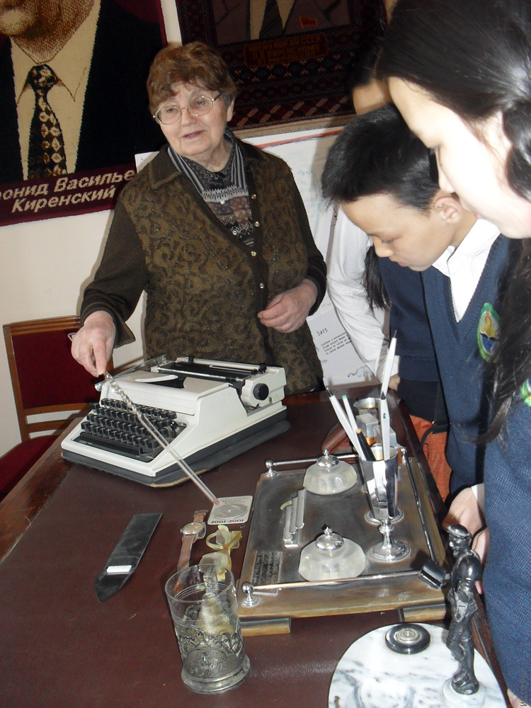 2013 год. Профессор Ирина Самсоновна Эдельман проводила экскурсию в мемориальном музее Л.В. Киренского, организатора и первого директора Института физики Сибирского отделения Российской академии наук для школьников из Амги (Якутия), малой родины академика Киренского. Красноярск.