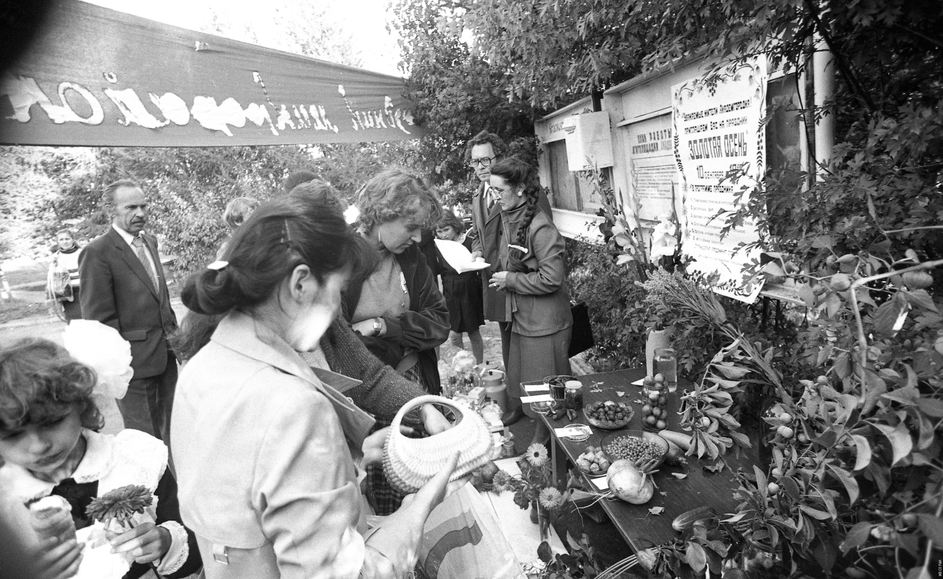 Долгое время в Академгородке Красноярска существовала традиция праздников. Устраивали, в том числе, и праздник урожая «Золотая осень» с выставкой выращенных овощей на своих дачных участках. На фото запечатлен фрагмент одного из таких праздников в 1986 году.