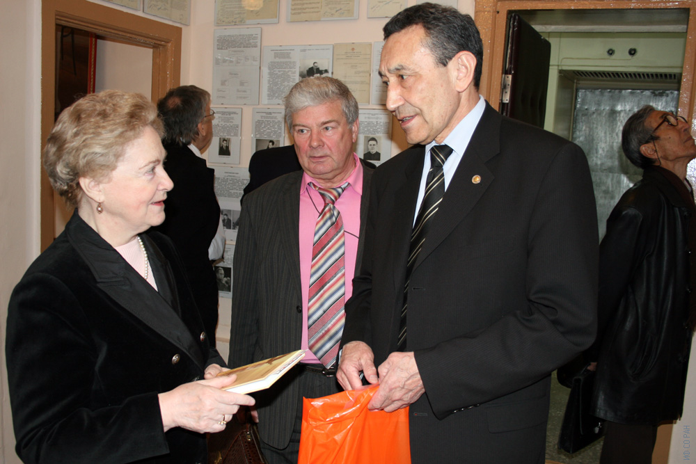 В мемориальном музее Л.В. Киренского. Слева направо: Т.Л. Овчинникова (Киренская), В. С. Финогенко, И. И. Колодезников, апрель 2009 г.