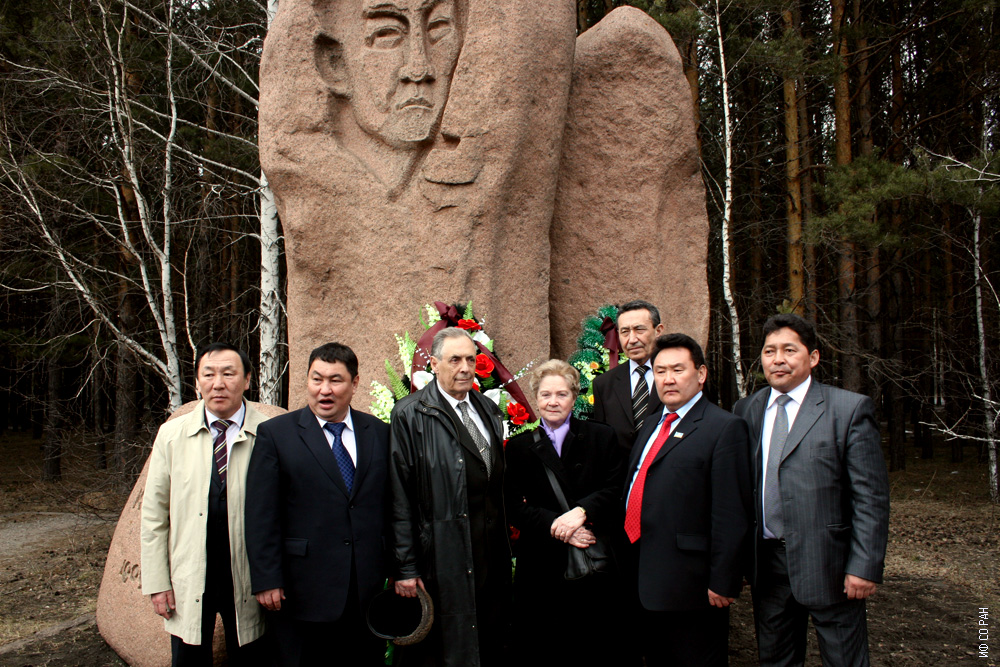 У могилы академика Л.В.Киренского, организатора и первого директора Института физики им. Л.В. Киренского Сибирского отделения Российской академии наук. (Он похоронен на территории института в Академгородке Красноярска). Слева направо: И.Г. Неустроев , А. В. Мигалкин, И. И. Гительзон, Т. Л. Овчинникова ( дочь Киренского), И. И. Колодезников, А. А. Пахомов, А. Е. Артемьев, 9 апреля 2009 г.