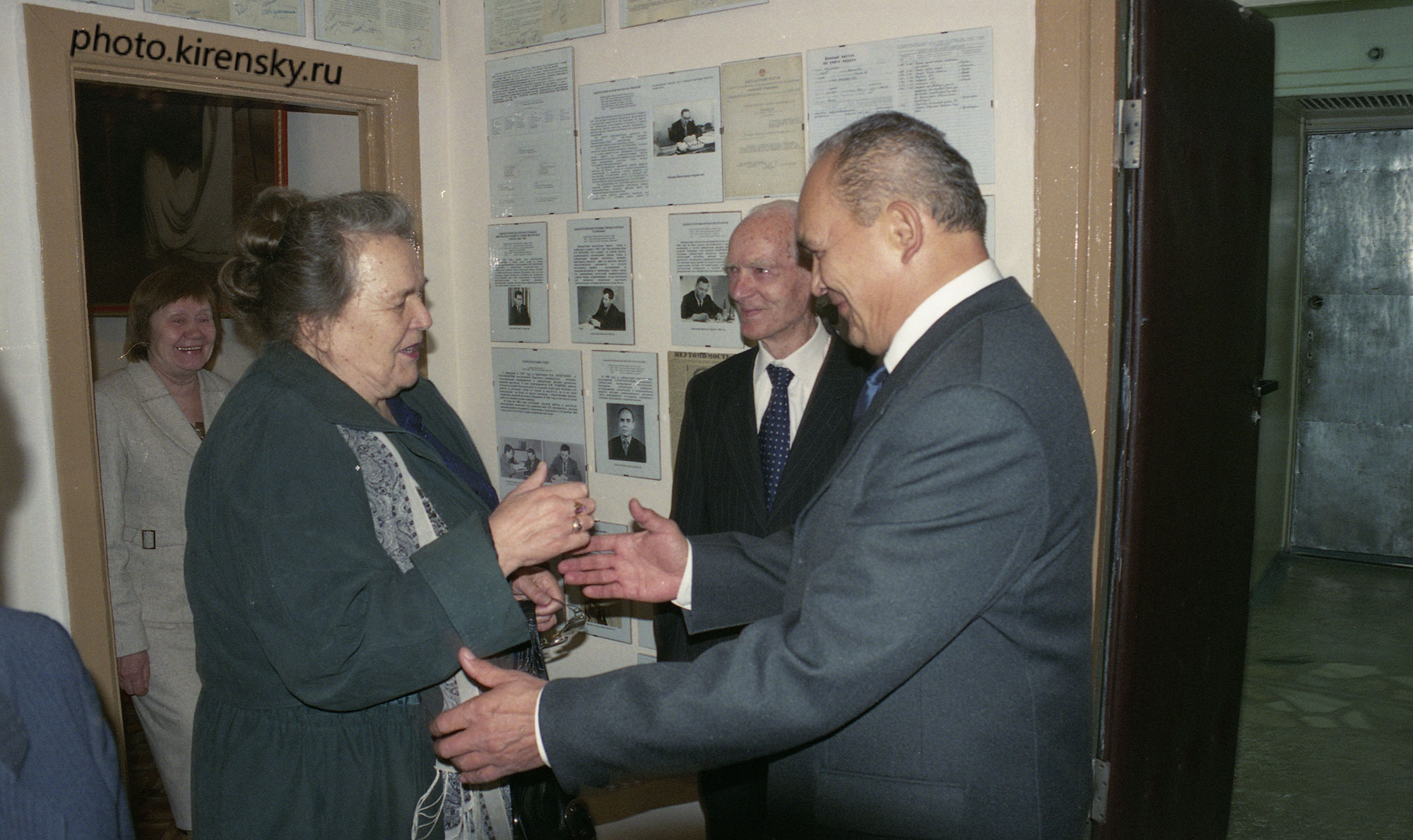 9 апреля 2009 года отмечали 100 лет со дня рождения академика Леонида Васильевича Киренского, организатора и первого директора Института физики им. Л.В. Киренского Сибирского отделения Российской академии наук. Торжества состоялись в Институте физики в Академгородке. В перерыве заседания гости посетили мемориальный музей Киренского, расположенный в институте его имени. На снимке, слева направо: Балуева Г.Р., Золтухин Г.Е., Петров М.И. В проеме двери Кашкина Л.В. Красноярск.