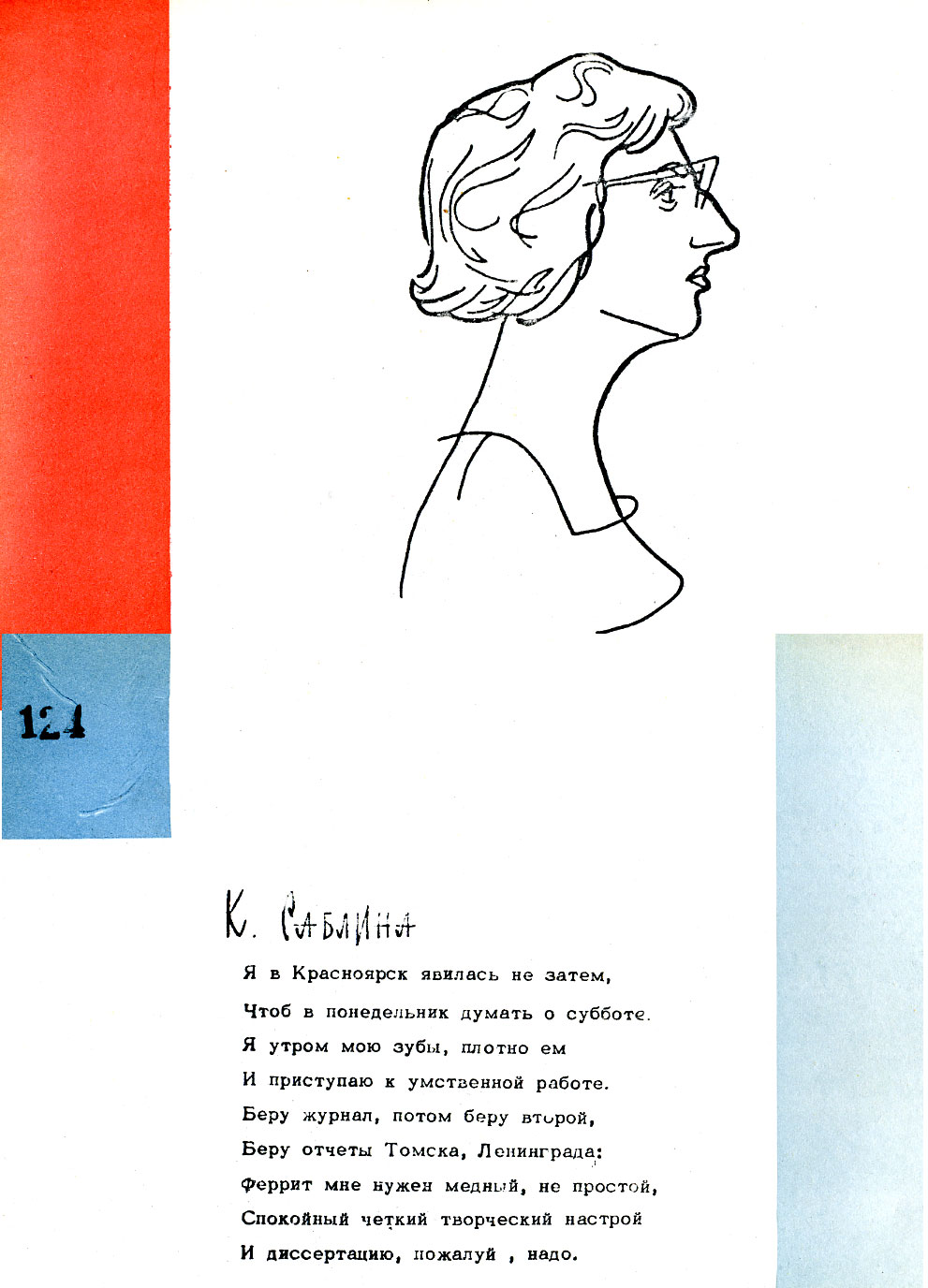 Дружеский шарж Саблиной К.А. из книги шаржей "Музей друзей", первая часть которой вышла в 1967 году. Авторами ее являются научные сотрудники Института физики Сибирского отделения АН СССР (СО АН СССР с 1991 года - СО РАН) Баюков О.А и Чистяков Н.С. Книга вышла малым тиражом (всего 100 экземпляров) и моментально разошлась среди персонажей и сотрудников. Она была подарком авторов к юбилею института. В 1972 году был издан второй том, в предисловии к которому авторы подробно рассказали, что побудило их на издание такой книги. Оба тома размещены на сайте. Красноярск.